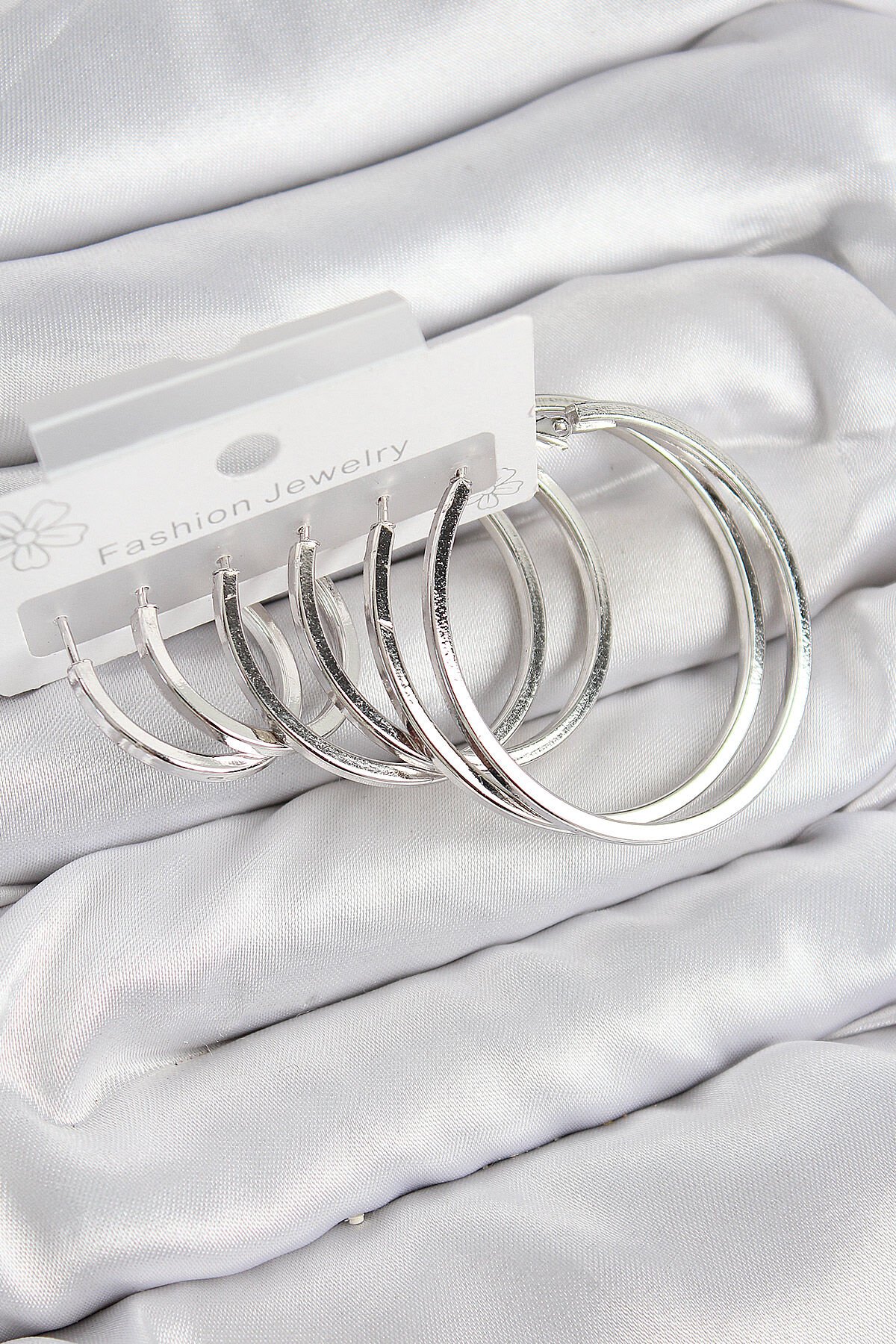 Pirinç Halka Model Gümüş Renk Kadın Set Küpe e_BKP11050