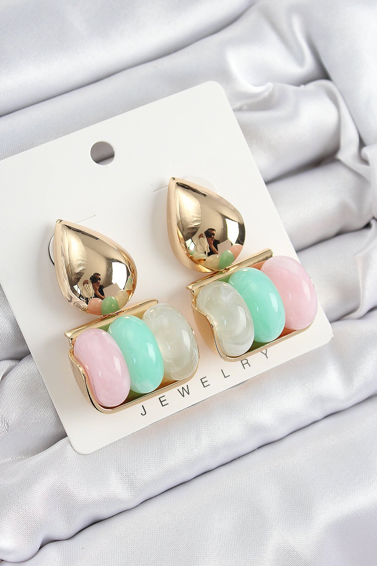 Pirinç Karışık Renk Vintage Model Kadın Küpe