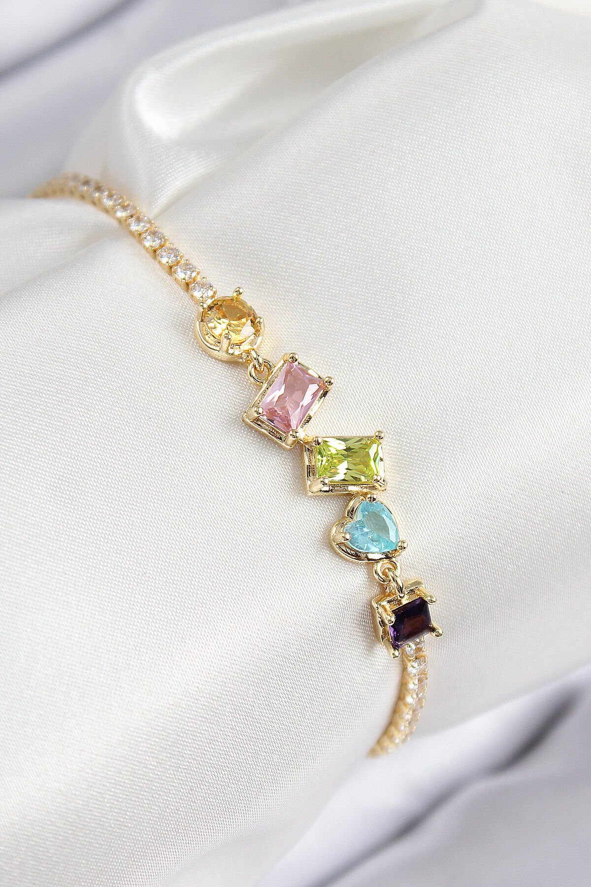 Pirinç Renkli Zirkon Taşlı Geometrik Model Gold Renk Kadın Bileklik
