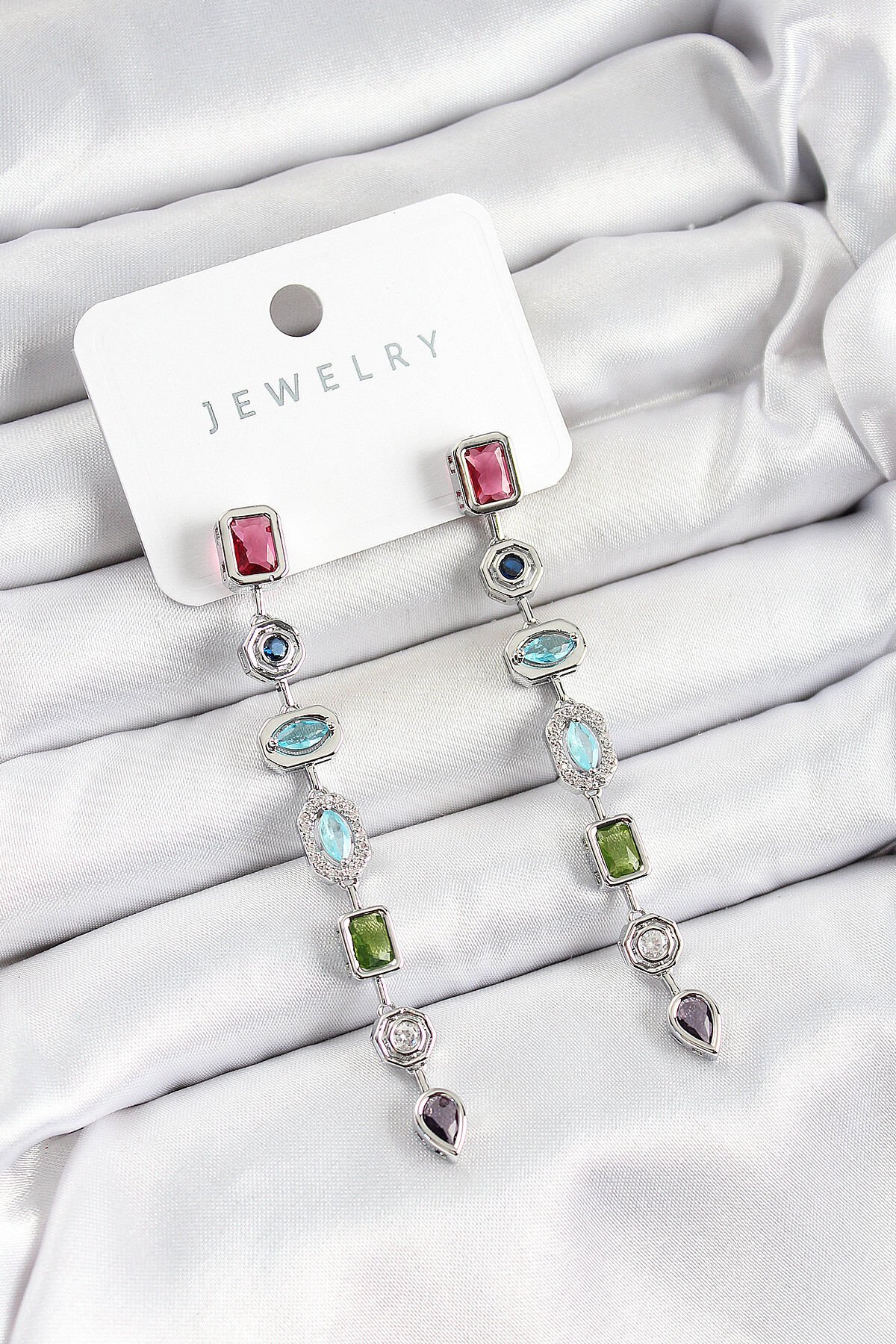 Pirinç Renkli Zirkon Taşlı Sallantılı Model Gümüş Renk Kadın Küpe