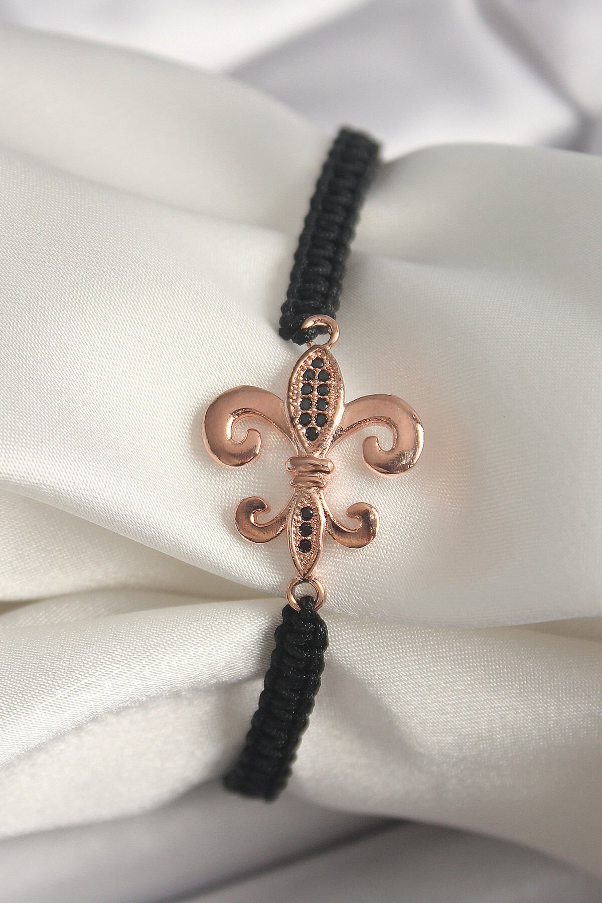 Pirinç Rose Renk Zirkon Taş İşlemeli Zambak Figür Asansörlü Makrome Model Kadın Bileklik