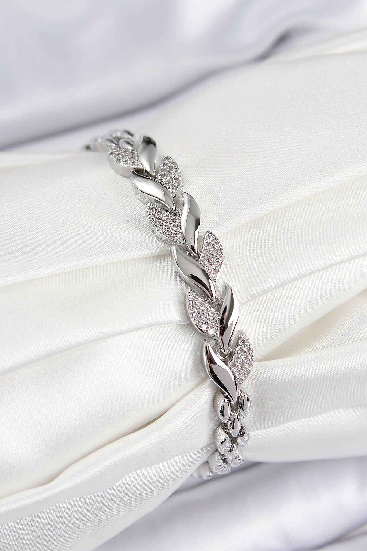 Pirinç Zirkon Taşlı Balık Kuyruğu Model Gümüş Renk Kadın Bileklik e_BB7530