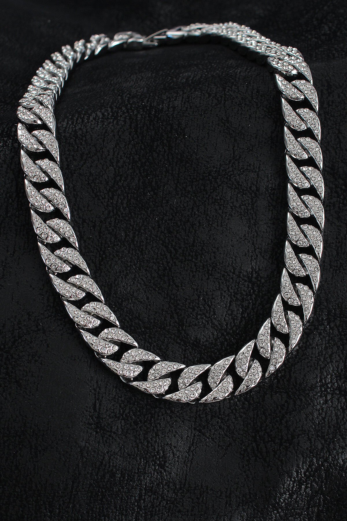 Pirinç Zirkon Taşlı Cuba Gurmet Model Gümüş Renk Erkek Kolye