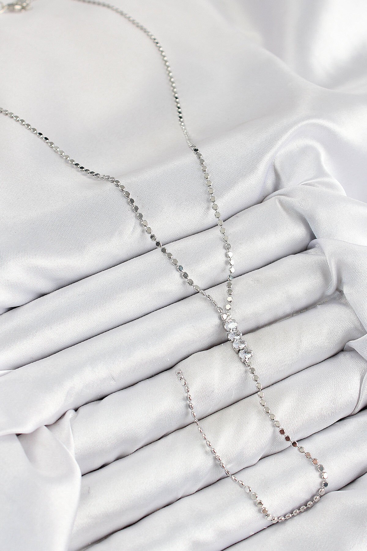 Pirinç Zirkon Taşlı Ezme Zincirli Model Gümüş Renk Y Kolye e_BKO10464
