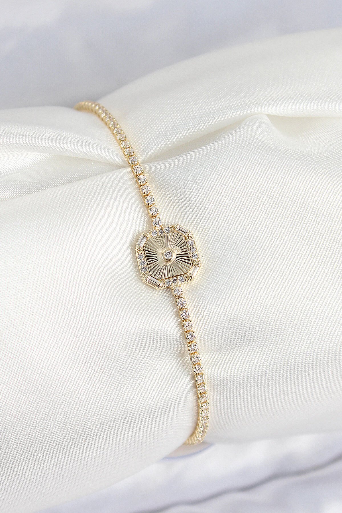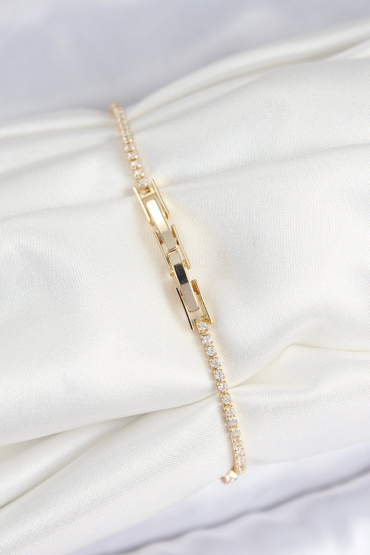 Pirinç Zirkon Taşlı Kare Model Gold Renk Kadın Bilekilk