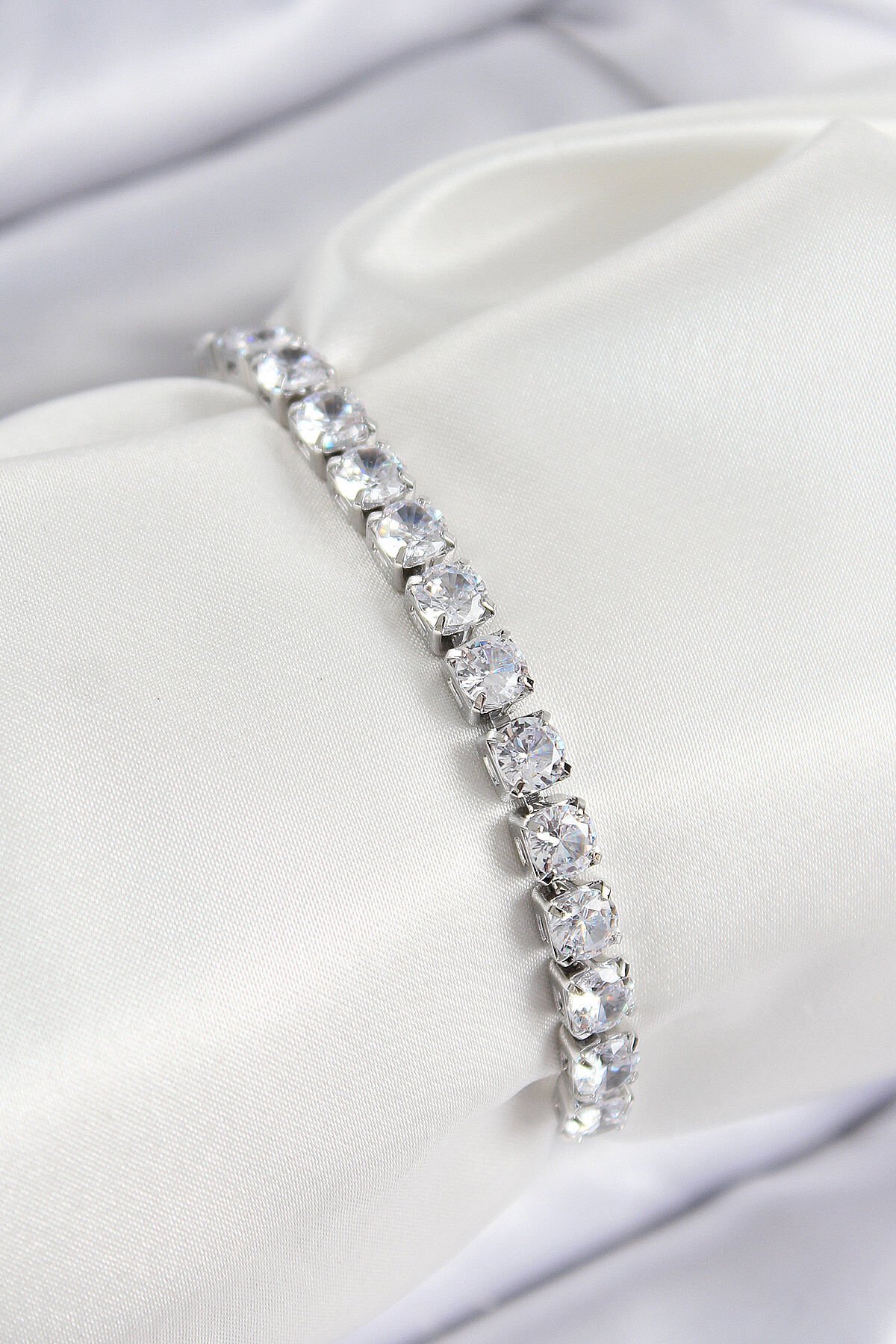 Pirinç Zirkon Taşlı Kare Model Gümüş Renk Asansörlü Kadın Bileklik