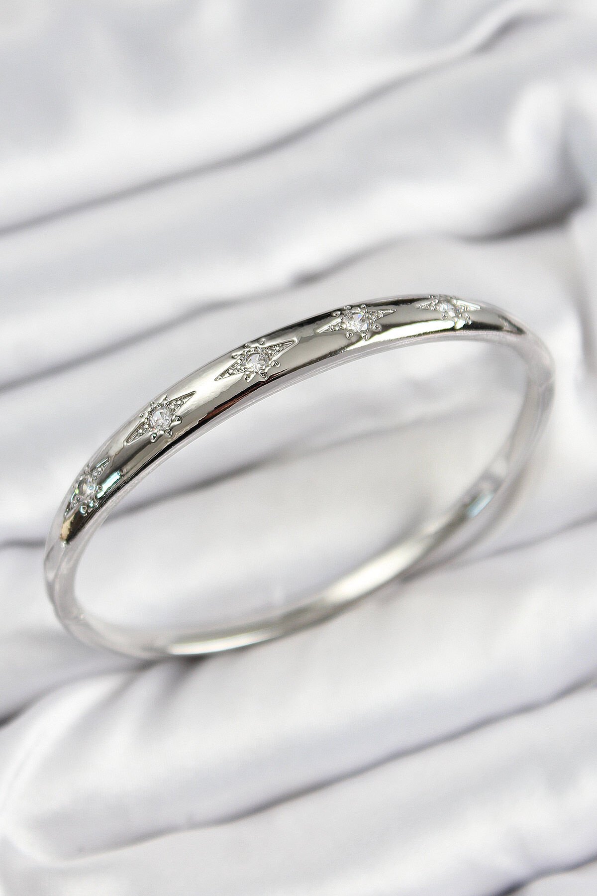 Pirinç Zirkon Taşlı Kutup Yıldızı Model Gümüş Renk Kadın Kelepçe e_BB7571