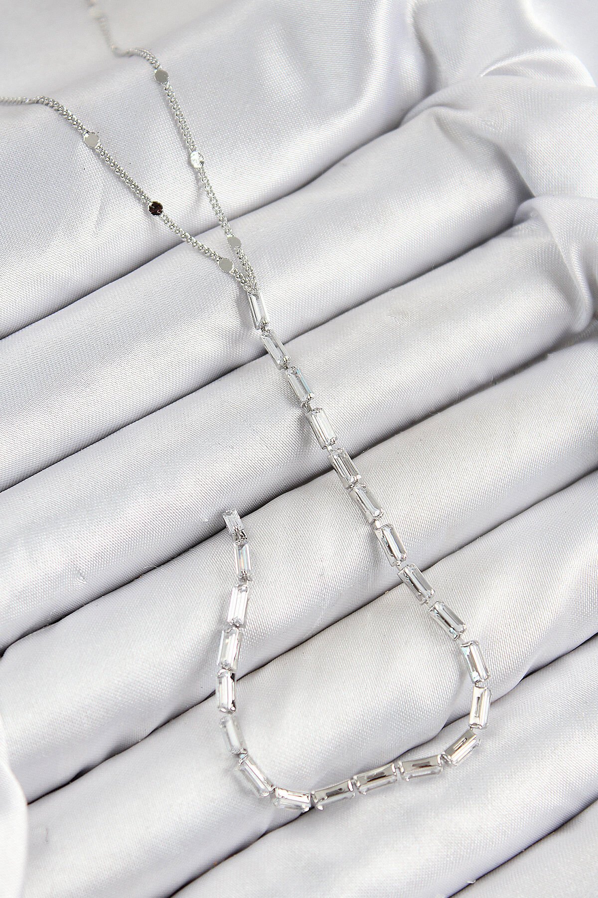 Pirinç Zirkon Taşlı Model Gümüş Renk Y Kolye e_BKO10451