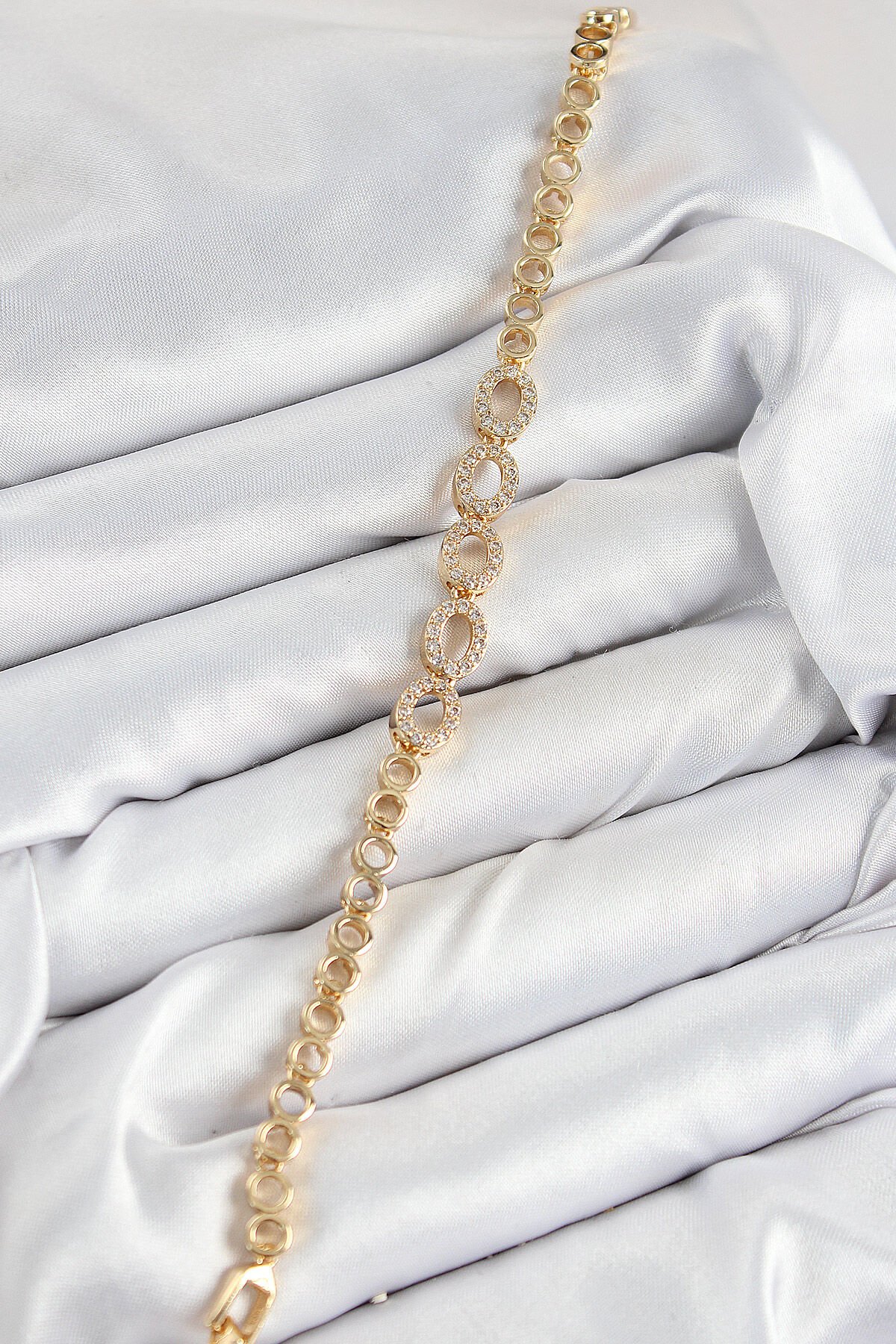 Pirinç Zirkon Taşlı Oval Model Gold Renk Kadın Bileklik