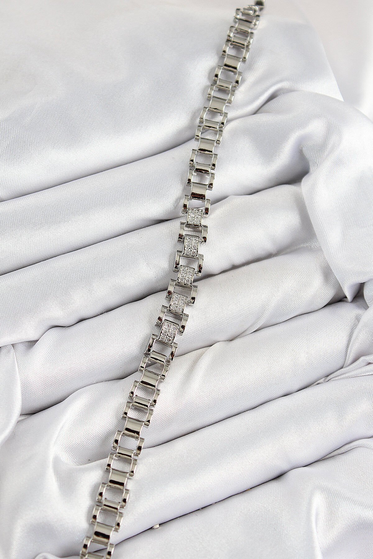 Pirinç Zirkon Taşlı Parçalı Model Gümüş Renk Kadın Bileklik