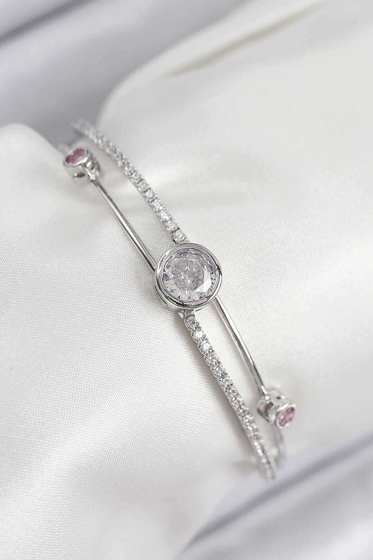 Pirinç Zirkon Taşlı Pırlanta Model Gümüş Renk Kadın Bileklik e_BB7880