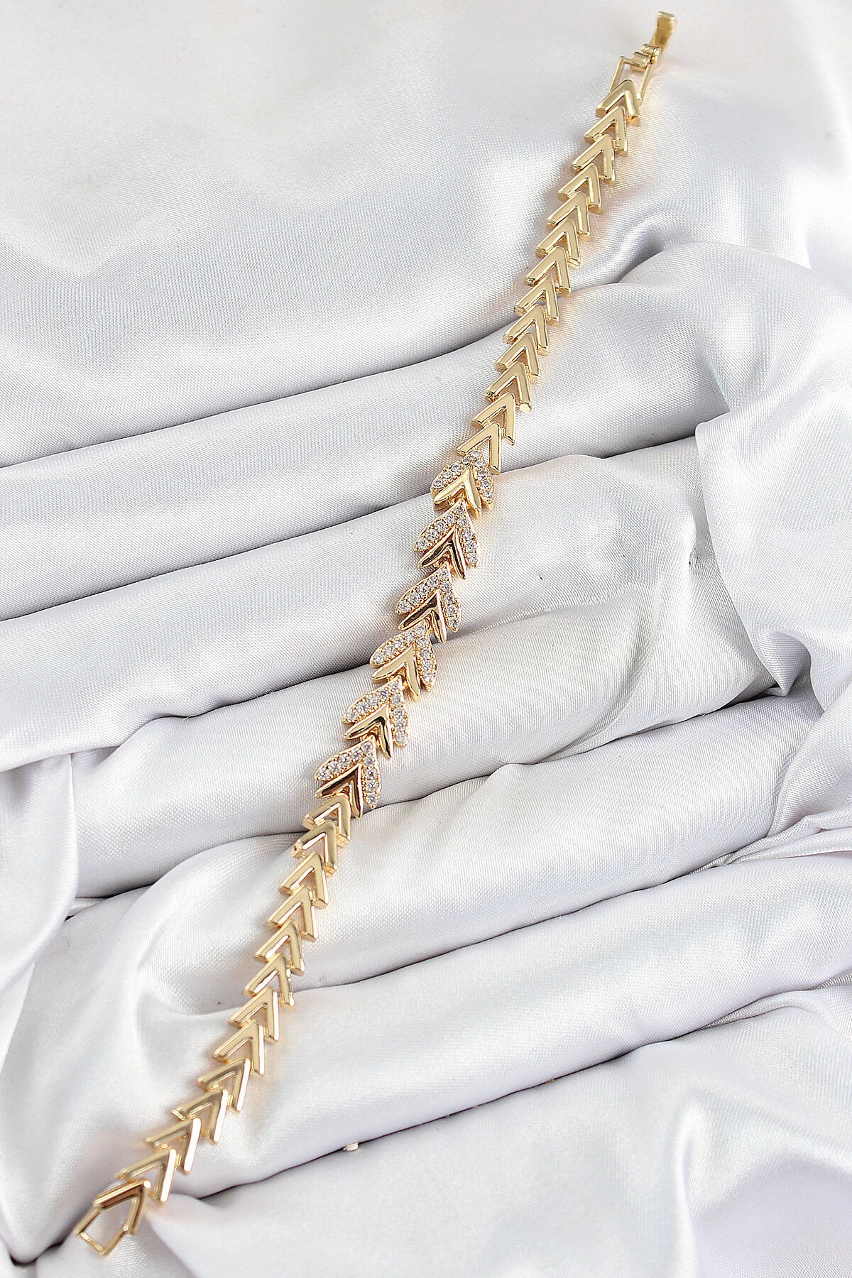 Pirinç Zirkon Taşlı Sıralı Ok Model Gold Renk Kadın Bileklik