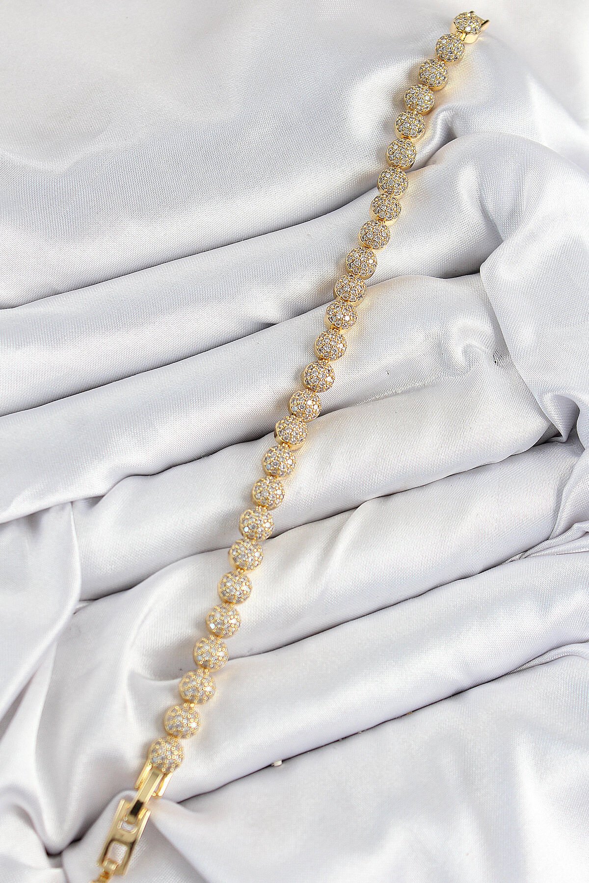 Pirinç Zirkon Taşlı Yarım Topcuk Model Gold Renk VIP Seri Kadın Bileklik