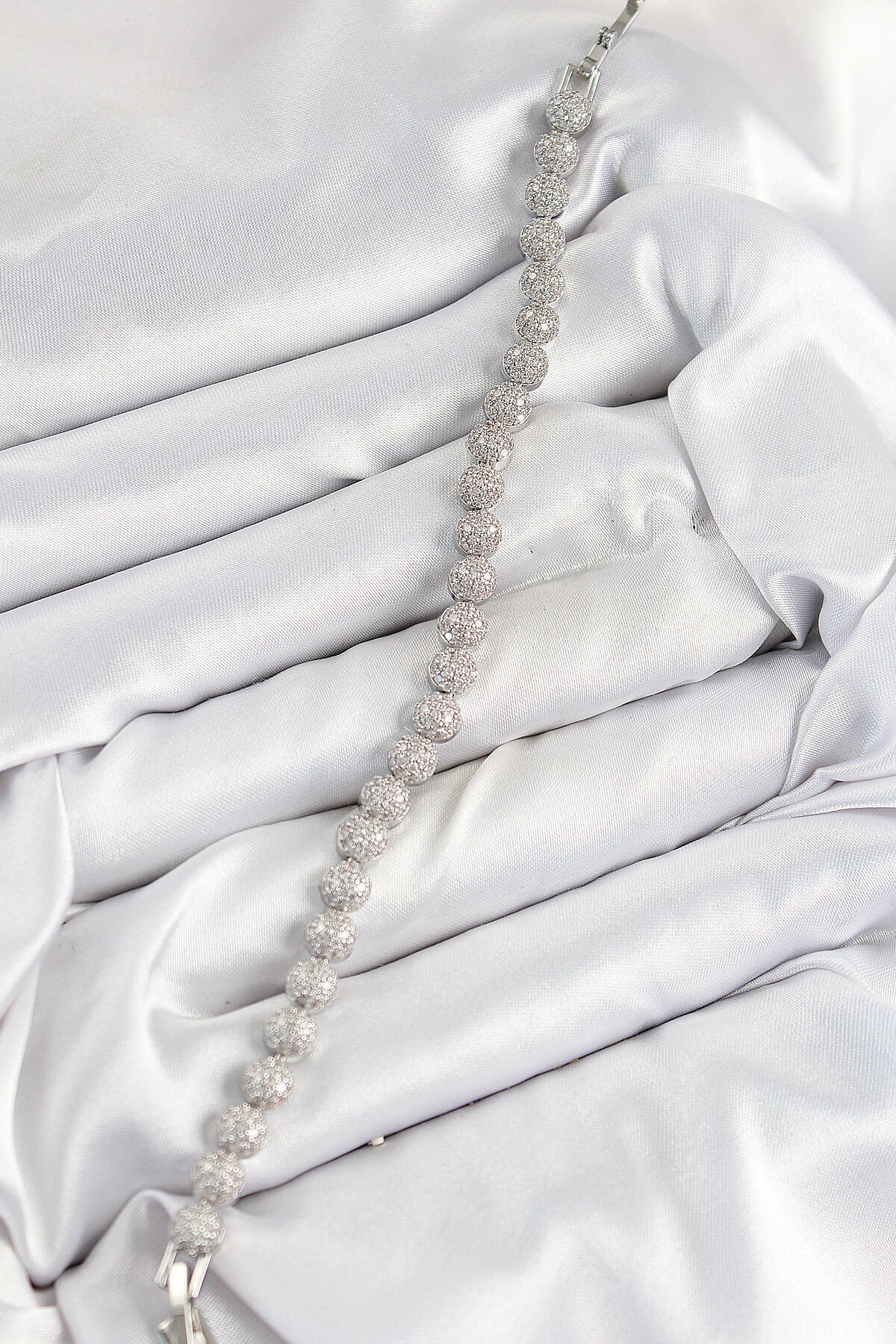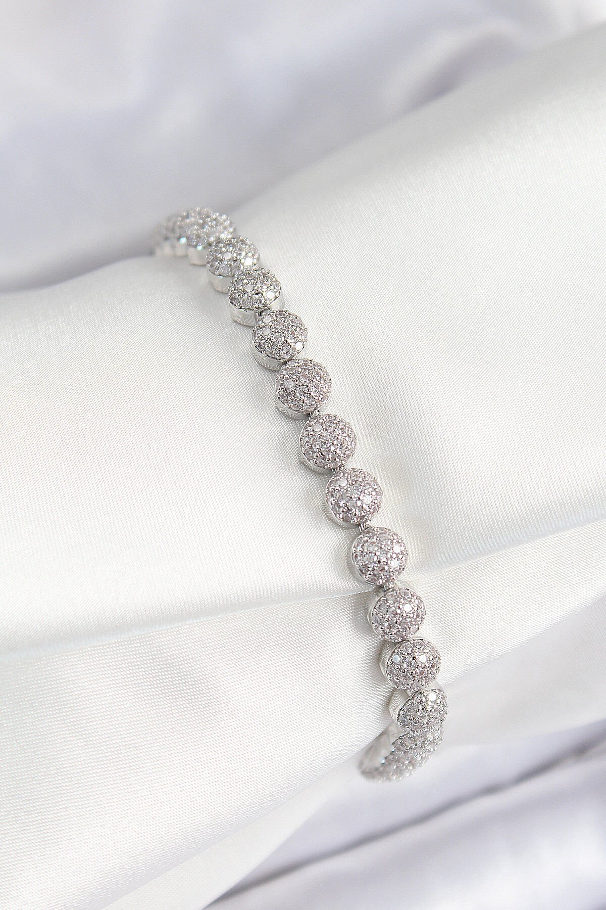 Pirinç Zirkon Taşlı Yarım Topcuk Model Gümüş Renk VIP Seri Kadın Bileklik