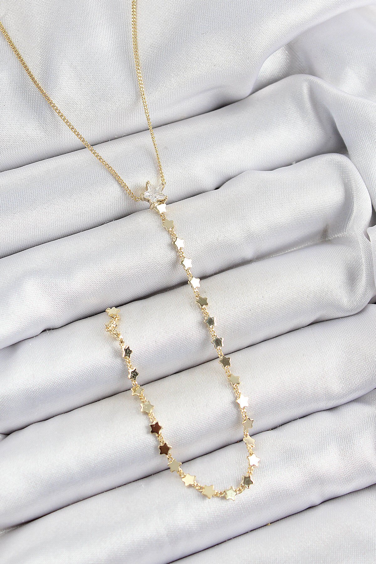 Pirinç Zirkon Taşlı Yıldız Figürlü Y Model Gold Renk Kadın Kolye