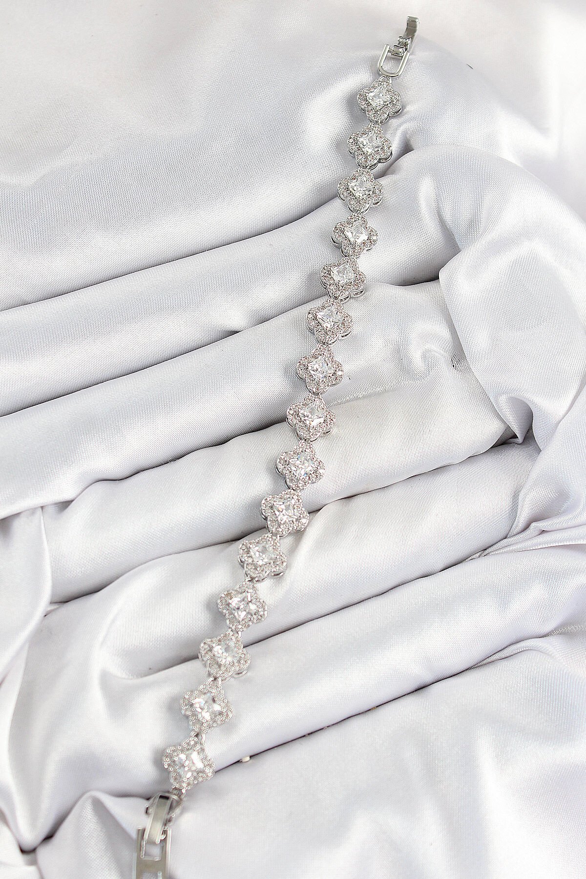Pirinç Zirkon Taşlı Yonca Baget Model Gümüş Renk VIP Seri Kadın Bileklik