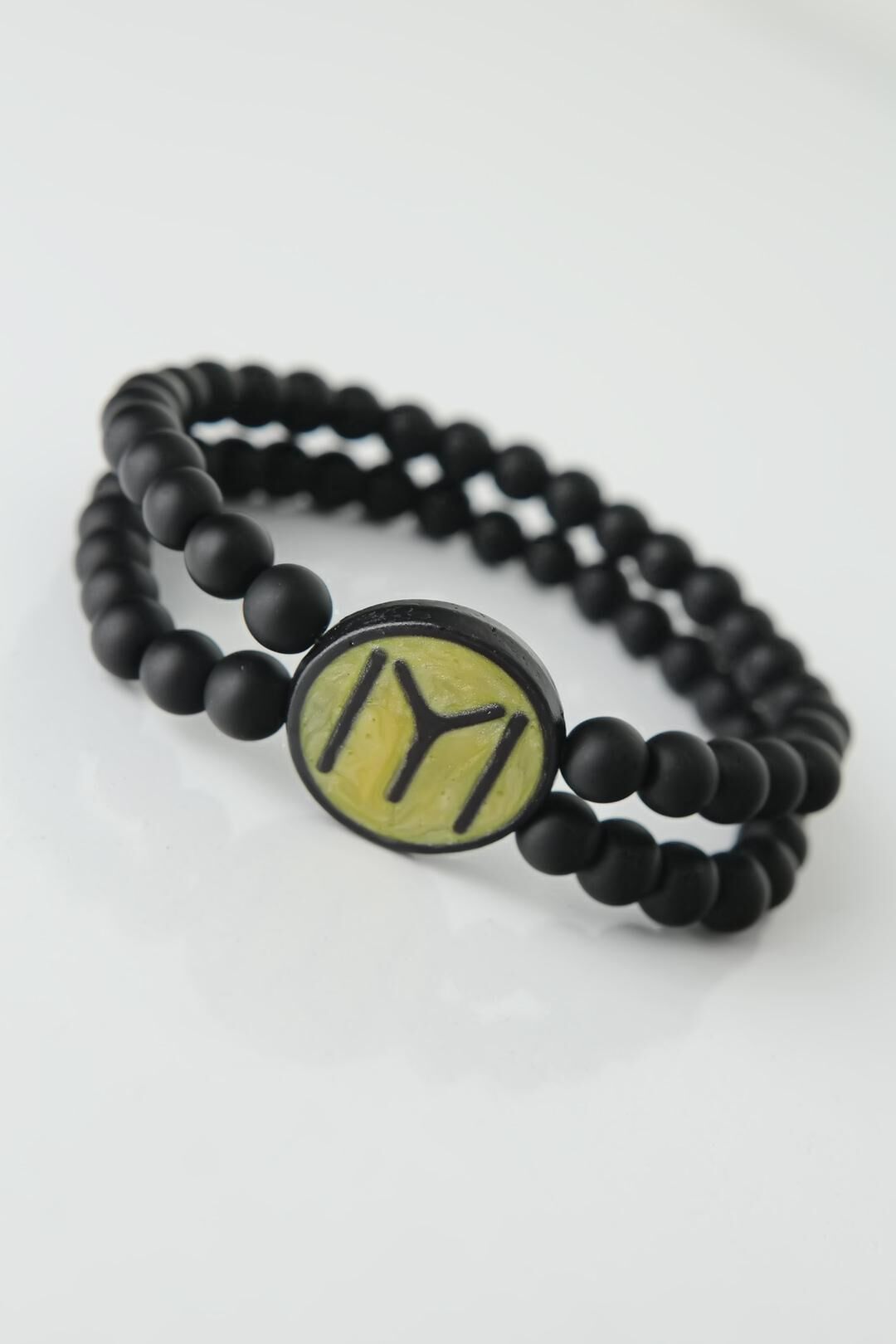 Rengi ve modeli ile Sarı Renkli Metal Üzerine Siyah Kayı Boyu Figürlü Siyah Renk Çift Sıra Doğal Taş Erkek Bileklik sizin için vazgeçilmez olacak.