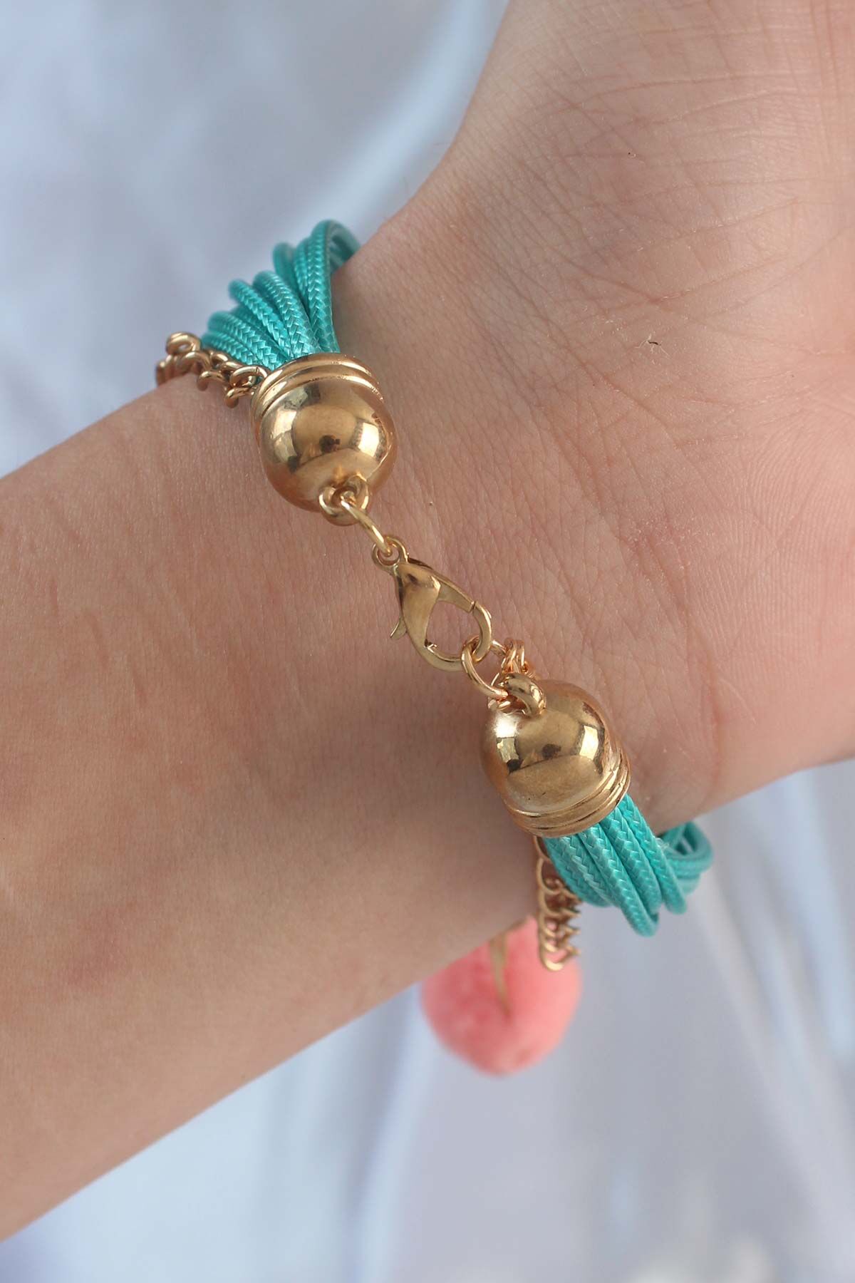 Turkuaz Renk Kar Tanesi Figür Zincir Detay İpli Çoklu Bileklik